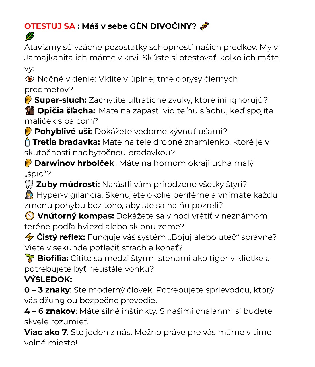 • absolútna bezpečnosť vďaka nášmu génu atavizmu